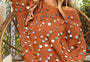 This spangled sweater showcases a distressed effect and bishop sleeves for a bold and eye-catching style. The distressed detailing adds a touch of edginess and character to the sweater. The bishop sleeves create a voluminous and dramatic silhouette, adding a touch of elegance to the look. The spangled embellishments bring a hint of glamour and sparkle to the design. A statement piece that effortlessly combines trendy distressing with feminine bishop sleeves for a unique and fashion-forward aesthetic.